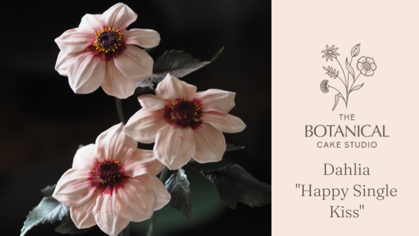 Learn how to make this pretty single dahlia with peachy petals and a dark red centre